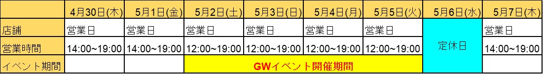 GWの営業日程とイベントのご案内