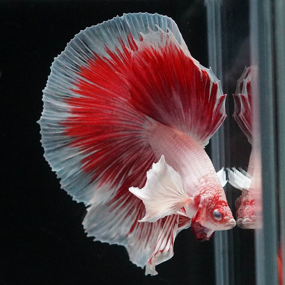 ショーベタはオス同士が威嚇する時鰭を大きく開きます。 単独で飼育しているとその機会が少なく、鰭が堅くなり、本来の美しい鰭を広げることができなくなります。 そのため、1日に1〜2回は鏡を使ってフレアリングをさせてあげましょう。